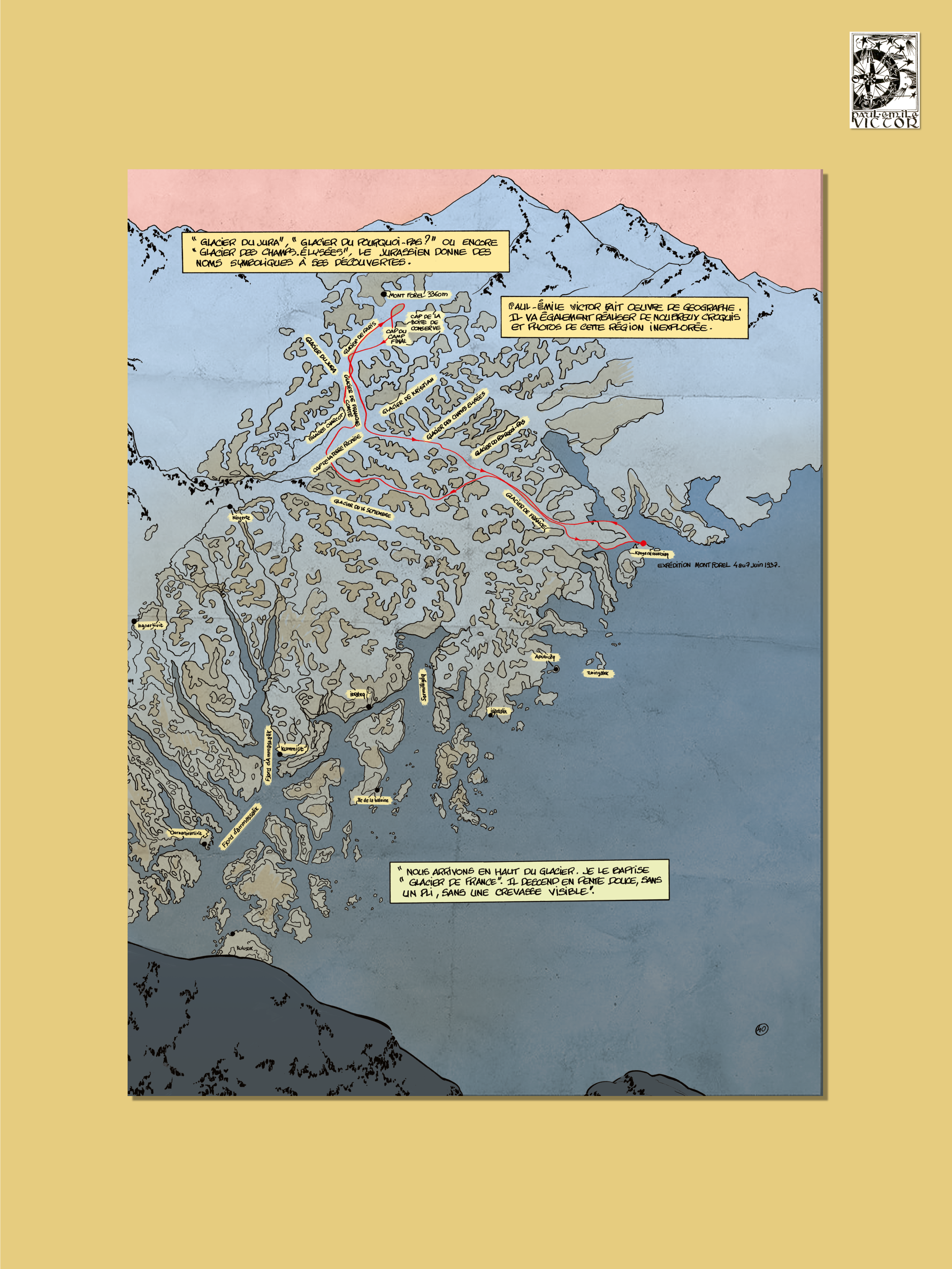 La série biographique en bande dessinée sur l'explorateur Paul-Émile Victor se compose de 4 albums de 48 pages, plus un dossier de 6 pages en fin de chaque volume. Le tome 1 est en librairie depuis avril 2024, le tome 2 depuis juin 2025. Le tome 3 est en cours et sera en librairie à partir de septembre 2026, le tome 4 au cours de l'année 2027.