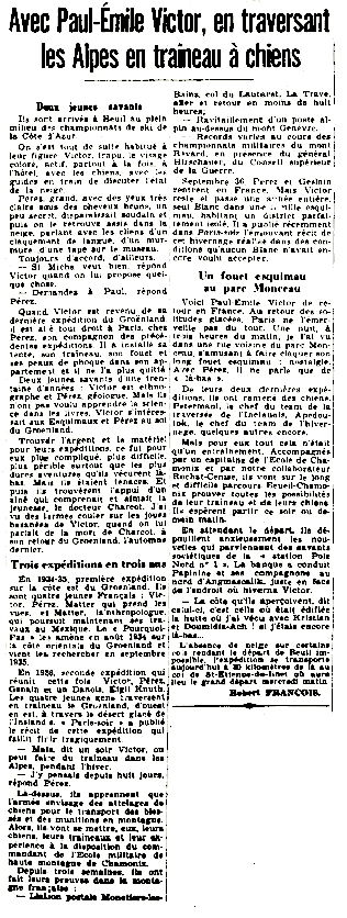 De retour en France en août 1937, Paul-Émile exploite les données récoltées durant son séjour au Groenland. Il publie Boréal en 1938 et Banquise en 1939. Afin de prouver que les techniques polaires peuvent pallier les problèmes de transport d'hommes et de matériel en milieu enneigé, il effectue début 1938 un raid transalpin en traîneaux à chiens entre Nice et Chamonix.