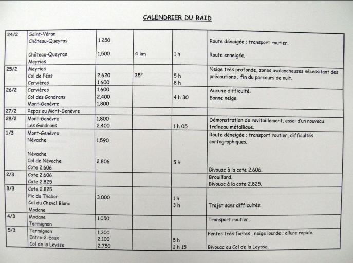 Calendrier de raid alpin du 24/02/38 au 05/03/38